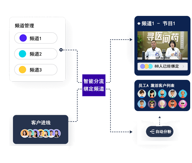 自定义频道分发规则,灵活指定不同渠道、不同时段的客户自动进入指定的频道,无需手动操作