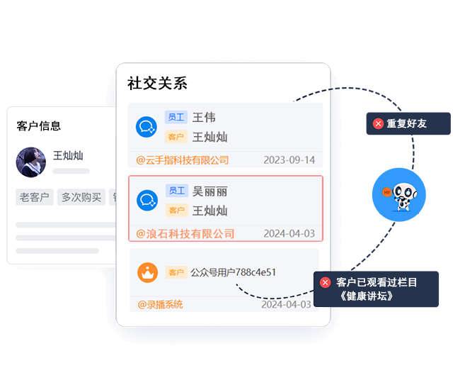 不同企微主体数据不互通,客户重复添加无法及时发现,导致员工重复服务